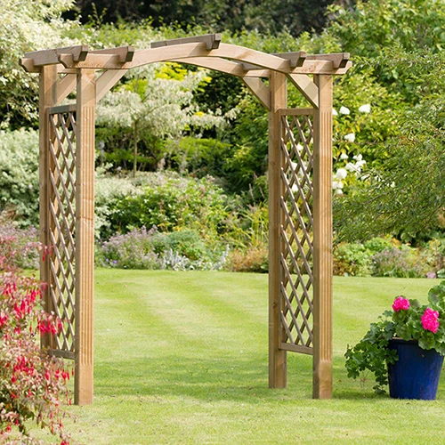 The Venus Arch is designed to enhance any garden walkway or create a standalone decorative feature with its stylish design. It has an elegant curved roof and diamond-design trellis side panels that are ideal for climbing plants where the blooms will smother the rustic timber.